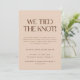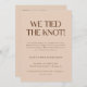 Modern Beige Wedding "We Tied the Knot!" Elopement & Reception Party Invitation. Personalize this minimalistic earthy beige and terracotta elopement announcement card with a custom "just married" message, and reception "happily ever after party" invite info for family, friends and loved ones. Personalize further with bride and groom names, elopement date, and a wedding photo on the back.