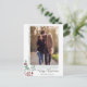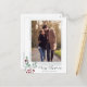 En modern kalligrafmall för vykort för julfoto med ett vattenfärgsbär löv gren. FOTOT FÖR PROVFAMILJEN INGÅR INTE. ERSÄTT MED DIN EGEN FOTO FÖRE ORDNING.