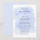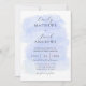 Detta är en modern bröllopsinbjudan med en raffinerad blå akvarellstruktur som påminner om klart blått vatten inspirerat av kustteman. Elegant typografi framhävs av denna unika design. Anpassa denna mall med din unika information och personliga touch.