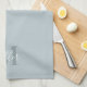 Specialdesignad modern blå kökshandtork med personligt familjenamn monogram i modern handskrift.