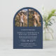 Modern Blå Bågformad Foto QR-kod Bröllop Inbjudningar