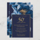 Denna eleganta marinblå och guldfärgade blomstermönstrade 50-års bröllopsdag inbjudan kan anpassas med din information i chic, modern typsnitt. Designad av Thisisnotme©