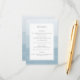 Modern Blå Bröllopsdetaljer Bilaga Kort. Detta vackra och eleganta dammiga blåa bröllopsdetaljer bifogade kort har en vattenfärg-målad ombre-bakgrund med en vit kant. Baksidan av inbjudan har samma blå vattenfärgsbakgrund. Hitta matchande föremål i Dusty Blue Watercolor Ombre Bröllops Kollektion.