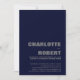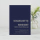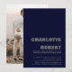 Bjud in dina vänner och nära och kära med denna stilrena minimalistiska marinblå med grå text bröllopsinbjudan med ett foto av det nygifta paret på baksidan för att dela din glädje över ditt senaste äktenskap. För bästa resultat anpassa din valda bild för baksidan av inbjudan till en 5 x 7 proportion.
