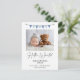 Modern enkel foto på framsidan pojkens födelseannons med en blå bunting flagga, modern kalligrafi rubrik och svart text. Detta moderna födelseannons vykort är ett sött sätt att tillkännage födseln av din nyfödda baby pojke.
