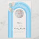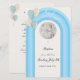Modern blå dop inbjudan med anpassad meny