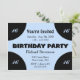 Ljusblå mitt på svart födelsedagsfestinbjudan. Blått och svart ger denna en modern utseende. Lägg till åldern eller lämna den tom - Komplett med RSVP
