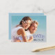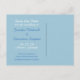 Den enkla blå och svarta texten på framsidan av det här Spara vykortet för datum Bröllop är attraktiv, men drar inte bort uppmärksamheten från ditt eget foto. Kortets baksida har gott om utrymme och ett antal fält för att du ska få det att säga spelar ingen roll att du vill!