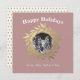 Modern lila festlig högtidsdesign med texten 'God Jul' och en chic gyllene krans på blå bakgrund. Lägg enkelt till ditt (familjens) namn och ditt foto. Baksidan av kortet har ett guld julgranmönster på vit bakgrund. Om du behöver hjälp eller matchande produkter, vänligen kontakta oss via vår butik.