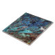 En keramisk platta som har en närbild av en sektion av malakitmineralsten i blå, gröna och koppartoner. Ett vackert tillskott till alla hemdekorationer.
