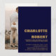 Bjud in dina vänner och nära och kära med denna stilrena minimalistiska marinblå med guldbokstäver bröllopsinbjudan med ett foto av det nygifta paret på baksidan för att dela din glädje över ditt senaste äktenskap. För bästa resultat anpassa din valda bild för baksidan av inbjudan till en 5 x 7 proportion.
