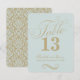 Elegant och chic pastelljus turkos blå och guld kalligrafi kort med ett blomster monogram och rullande designelement inklusive vacker damaskmönster på baksidan av kortet.