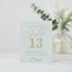 Modern blå guldskrift vigselbord nummer inbjudningar