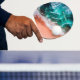 Modern blå havsstrand med monogrammerade kusthav pingisracket