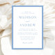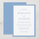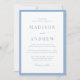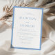 Fira din bröllpsdag med denna moderna bröllpsinbjudan med ljusblå ram, som har en mjuk blå ram som ger en luftig och förfinad känsla till en ren och minimalistisk design. Den ljusblå kanten ger en fräsch och elegant touch samtidigt som den bibehåller en polerad och modern look, i kombination med klassisk serif-typografi och en subtilt accent i form av ett script för en tidlös balans. Perfekt för sommarbröllop, kustfiranden, utomhuslokaler och avslappnade men formella miljöer, erbjuder denna inbjudan en mångsidig grund som känns ljus, lugn och genomtänkt utformad. Anpassa formuleringen för att skapa en sammanhängande inbjudan som sätter en inbjudande och förhöjd ton för din brölloppsbrevpappersserie
