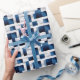 Modern blå kvadrat Upprepande Mönster Presentpapper