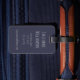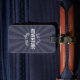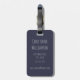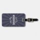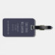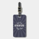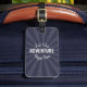 Den här mörk blått bagagetaggen innehåller den resande frasen"Låt ÄVENTYR börja nu!" i grått i mitten av en starstdesign på framsidan med kontaktinformation för personligen (namn, adress, mobilare, e-post) mörk blått på baksidan.