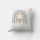 "Modern Dusty Blue Muted Rainbow Pojke Birth Stats Dekorativ kudde." Contemporaryn är enkel, hand plockade-designen har en muterad, jordisk färg-palettregnbåge med hjärtan, stjärnor, polka dots och din pojke namn, datum, tid, vikt och längd-personlig. Skadblått, stålblått, grått, guld och ett tips om . Konst av internationellt licensierad konstnär och formgivare, Audrey Jeanne Roberts, upphovsrätt