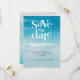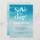 The Modern Blue Ocean Watercolor Save the Date har en snygg design med livfulla blå ocean vattenfärg accenter, perfekt för att tillkännage din speciella dag med en touch av kustcharm och samtida elegans.