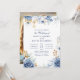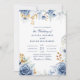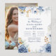 Fira din kärlek med denna eleganta blommiga bröllopsinbjudan med ett personligt foto av det lyckliga paret på baksidan. Framsidan visar en modern blå och guld vattenfärg blommig design med en fet bröllopsdatum-höjdpunkt, medan baksidan låter dig lägga till ditt favoritförlovnings- eller parfoto.