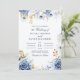 Modern blå och gul blomsterfotografi på brudparet inbjudningar