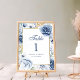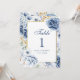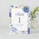 Modern Blå och Guld Blommig Bordnummer för Bröllop