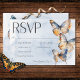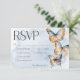 Fånga naturens charm med vårt fantastiska svarskort för fjäril bröllop med tre middagsalternativ. Handmålade vattenfärgade fjärilar ger liv en fängslande visning av rik färg. Vackra toner av beige, varm brun, terracotta-rost, tårblått och grädde skapar en känsla av elegans. Ett mjukt, dammigt blått vattenfärgstvätt ger den perfekta bakgrunden. Den här designen är perfekt för naturens innersta väsen och bjuder in dina gäster att fira din kärlekshistoria mitt i dess skönhet. Skapat av Farmhouse Press.