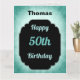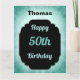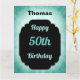 Snyggt blått och svart personlig 50:e födelsedag hälsningskort.