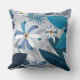 Modern blå och vit Blommigt med geometrisk Löv Kudde