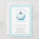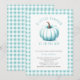 Modern Blå Pumpa Gingham Rutig Pojke Babyfirande Inbjudningar