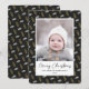 Skicka semesterhälsningar med anpassade och personlig till vänner, kolleger och familj i enkla, minimalistiska, elegant, roligt, festliga och moderna fotokort! Ett vackert ram av olika typer av guld och vita julhögar i Gräs Träd på svart bakgrund omger ditt foto på kant papper. Hälsning " God jul " skrivs i elegantens kalligrafi, och i det följande visas anpassningsbarnas meddelande hälsning från din familj namn i modern typografi. Omvänd för att visa en vacker bakgrund i Gräs i mönster vid jul i fullt.