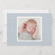 Enkel och modern fotofödelseannons kort med handskrivet skript för baby pojkens namn med ren text för alla viktiga födelse statistik. Ett landskapsfoto på framsidan och ett fyrkantigt foto på baksidan visar upp din senaste ankomst. Ett mönster av vita abstrakta prickar på en mjuk blå och blekgråblå bakgrund klär upp baksidan av detta tvåsidiga kort. All text och bakgrundsfärger är helt anpassningsbara.
