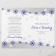 Moderna blå och vita snöflingor och silver grått-stjärnor bröllop-uppspelade ceremonier och party-program med elegant blå snöflingor med vita konturer och stjärnor på grått eller grått och vit bakgrund. Ett idealiskt bröllopsprogram för ett bröllop med en vinter- eller jultema i december. Fold den längs mitten. Välj bara värdet från tillgängliga pappra typer eftersom det viks väl.