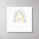 "Modern Blue Muted Rainbow Pojke Birth Stats Kanvastryck." Contemporary enkel, hand plockade-design har en muterad, jordisk dammig pastel och stålblått färg palettregnbåge med hjärtan, stjärnor, polka dots och din baby namn, datum, tid, vikt och längdpersonlig. Blues, grått, guld och en antydan om dammig . Artist av internationellt licensierad konstnär och formgivare, Audrey Jeanne Roberts, upphovsrätt.