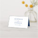 Lägg till en snyggt till din bröllopsmottagning eller speciella händelse med de här Modern Vågigt Ram bröllop-platskorten! Återdesignen visningarna "Bord" i ett handskrivet blått skript med utrymme så att du kan skriva gästens namn och bordsnummer. Ett blått vågigt gräns omger det mönster som kontrasterar mot en vit bakgrund. Baksidan av det vikna platskortet har namn och bröllop-datumet med fet vit text.
