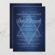 Vackra djupa nyanser av mörkblått skapar en textur som vatten på denna formella Bat Mitzvah-inbjudan. Elegant vit minimalistisk skrift med detaljer om er ceremoni och mottagning på en vacker gradient under den subtila Davidsstjärnan för att fira er judiska dotters myndighet.