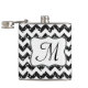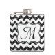 Modern Black Glitter Chevron Zig Zag Rand Fabric Print Mönster Monogram Initial Whiskey Flask Personlig