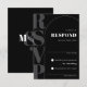 Anpassa den här moderna och elegant bågformen svarskort för svarsinfordran för svarsinfordran för svarsinfordran för svarsinfordran för svartvitt med stor mörk-OSA längs kortets lämnat sida med en enkel vit bågdesign i minimalistisk, klassisk, svart typografi, med ett fet klassiskt ampersand-monogram på baksidan - skapat för att matcha den unika Ampersand Black and White Photo Arch-formen Wedding-inbjudan. Skriv enkelt in ordalydelsen i mallen för att göra den till din! Matchningsinbjudan (i flera olika moderna färg) och fler finns tillgängliga - rulla nedan om du vill se samlingen. Anpassad design-förfrågningar och mallfrågor välkomnas alltid - klicka på "meddelande" eller e-post direkt på: contact@figandlilyco.com Design ♥ Fig and Lily Studios - skicka välsignelser och tack!