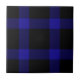 Den keramiska plattan har en modern svart och blå tartan (plaid) mönster.