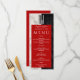 Modern, ljusröd i kombination med elegantens svarta och vita marmorbakgrund och gigantiskt monogram - initialer av brud och triom överst. Snyggt, enkel, unik meny contemporary bröllop.