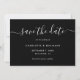 Moderna svarta och vita bröllop spara datum-kort med personlig och modernt typsnitt. Matchande objekt är tillgängliga. Anpassningsbarna begär välkomnande.