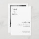 De här svarta och vita moderna bröllop spara datum-korten har elegantens kalligrafi av svart teckensnitt på en klassisk vit bakgrund. Anpassa med din bröllop-använda funktionen Redigera med design verktyg för att lägga till ditt favoritfoto på baksidan av inbjudan att spara datum. Om du vill ha fler inbjudningar från bröllop spara datum går du till vår spara datumsamlingen via https://www.zazzle.co.uk/collections/save_the_dates-119327072976167840 Fotografi av par av @emily_robinson_phoph