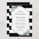 Modern svart- och vitt bröllop-kort med eukalyptus löv på en svart och vit stripe-bakgrund. Matchande objekt är tillgängliga.
