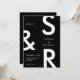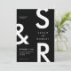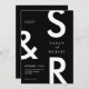 Modern svartvit monogrambröllop. Har fet typografi och minimal grafisk design. Anpassa texten med all information om din speciella dag.