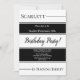 Den här elegantens inbjudan till den svarta och vita födelsedagen är perfekt för en modern födelsedag. Den enkla designen har en svart och vit kalligrafi på en svart och vit, randig bakgrund.