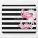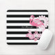Produktdesignen har en flamingo med kaleidoskopisk paisley-mönster i skuggor av rosa över svart och vitt rand. Denna tropiska fågeldesign med personlig gör en modern och unik musmatta.