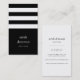 Modern affärskort och chic i ett unikt format för lodrät har tre vita rand på en klassisk svart bakgrund, med ditt namn och namn eller din titel i en attraktiv blandning av gemena serif- och moderna teckensnitt. Lägg till kontaktinformationen för fullt på baksidan i matchande svart. Lämpligt för alla yrken, exempel för företag i boutique.