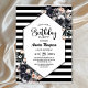 Modern Black Blommigt Stripe-Födelsedagsfest Inbjudningar