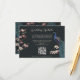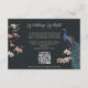Det här moderna QR-kortet för svart, blå peacock-webbplats (QR-kod) innehåller handritade blåa och teala blommor och magnolia-blommor och en blommigt och fågel mönster på baksidan, allt mot en elegant nästan svart bakgrund. All text kan redigeras.
