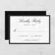 This wedding RSVP card features elegant black calligraphy script at the top, paired with classic serif lettering and space for your desired wedding response date. A bold black border frames the design, creating a polished and structured look that feels timeless and refined. The clean layout offers a sophisticated way for guests to reply, making this RSVP card well-suited for modern, formal, and classic wedding celebrations. Personalize the wording to create a response card that feels intentional and beautifully designed.